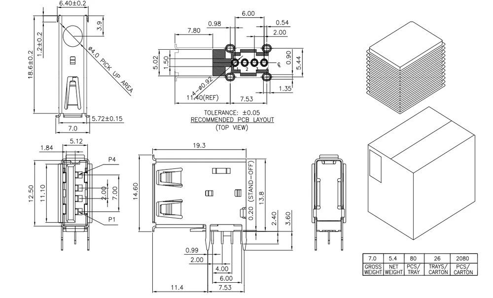 GEN2 protocol, straight pins. Nickel-plated SUS shell.